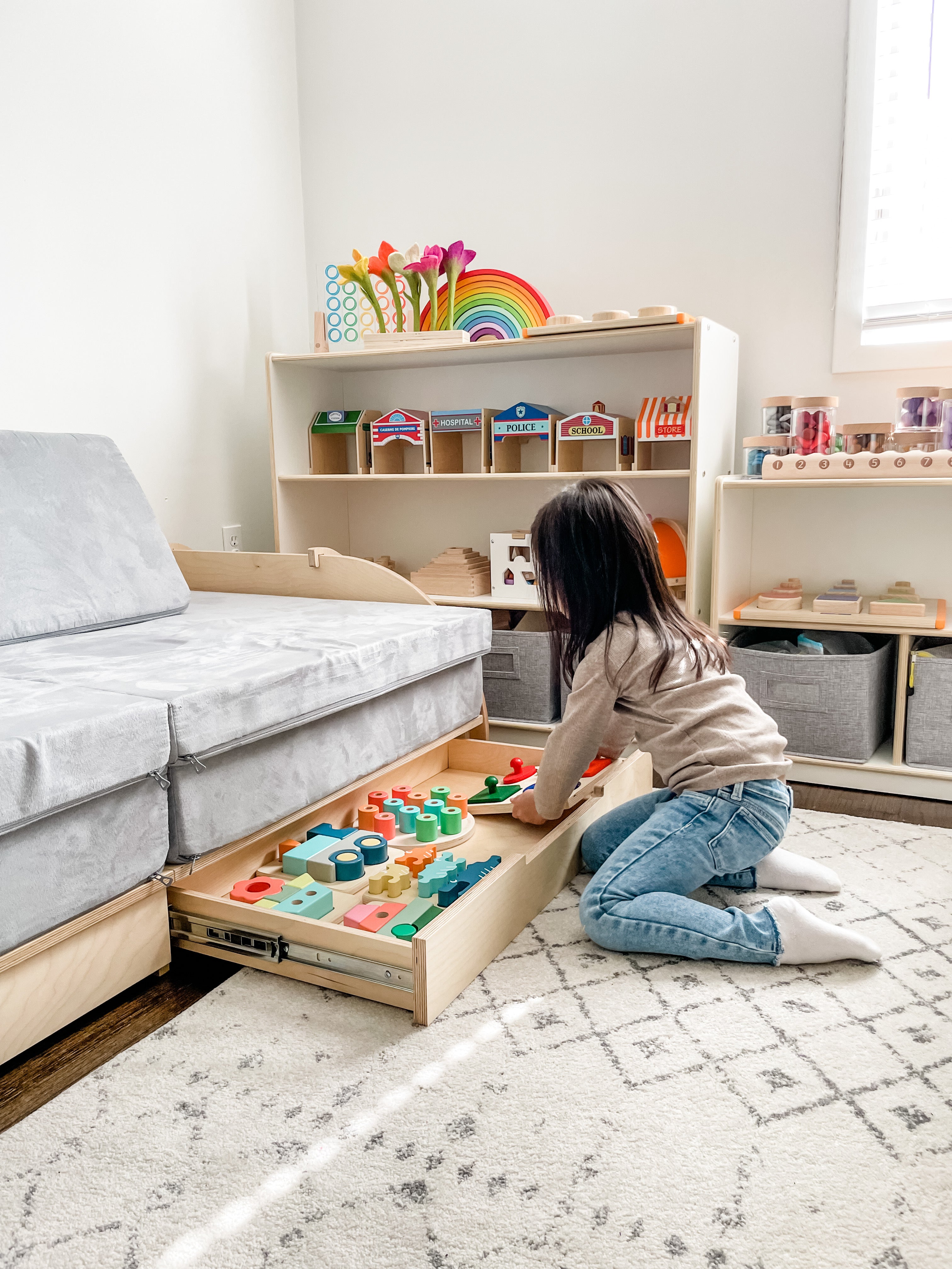 The Frame is designed to fit popular brands such as Nugget, Figgy, Kozy, Costway, and Imaginarium play couches. If you do not own one of these, measure your current play couch and if it is 33"D x 66"L, then it will fit our products!